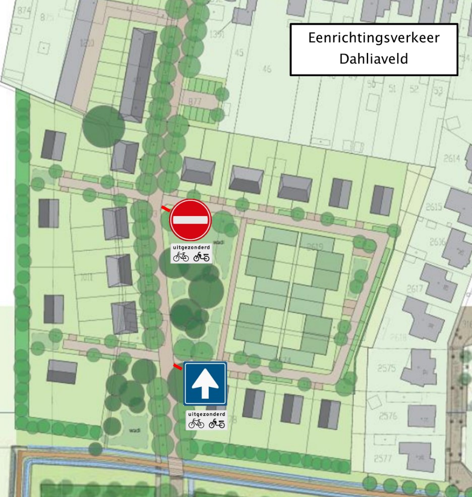 Verkeersbesluit eenrichtingsverkeer Dahliaveld, Gilze