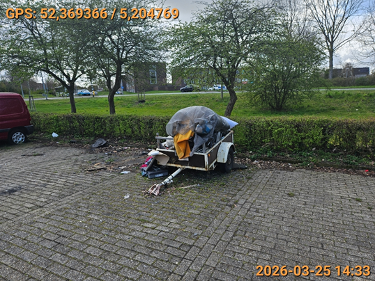 Aan de Amsterdamweg1 te Almere is een aanhanger zonder kenteken met afval daarin geplaatst in strijd met het bepaalde in artikel 5:5 van de Algemene Plaatselijke Verordening (APV 2011. Op grond van dit artikel is het verboden met een voertuig dat voor recreatie of anderszins voor andere dan verkeersdoeleinden wordt gebruikt zoals een caravan, een kampeerwagen, een aanhangwagen, een keetwagen of ander dergelijk voertuig langer dan op drie achtereenvolgende dagen zonder wezenlijke tijdsonderbreking te plaatsen of te hebben op de weg binnen de bebouwde kom.