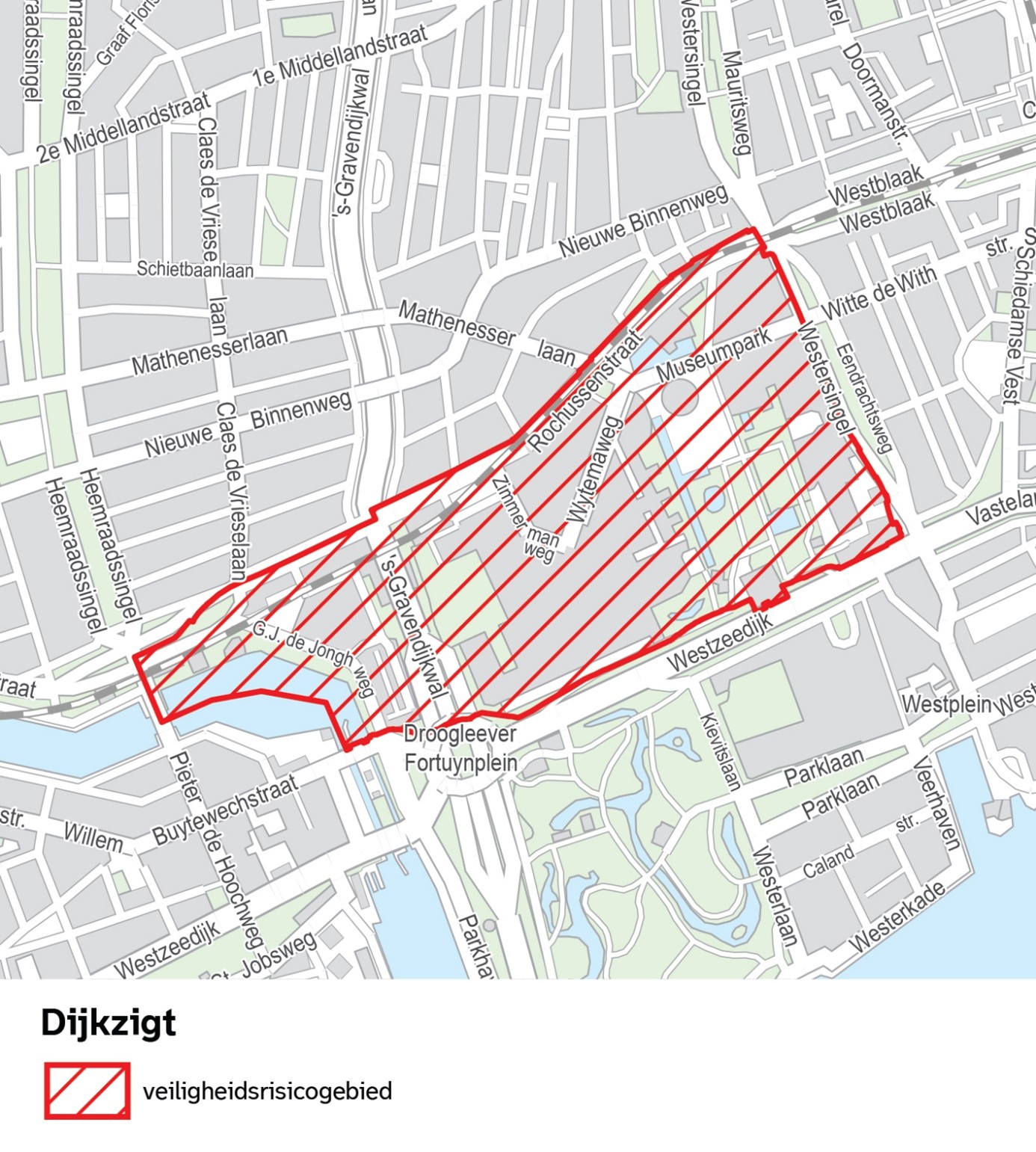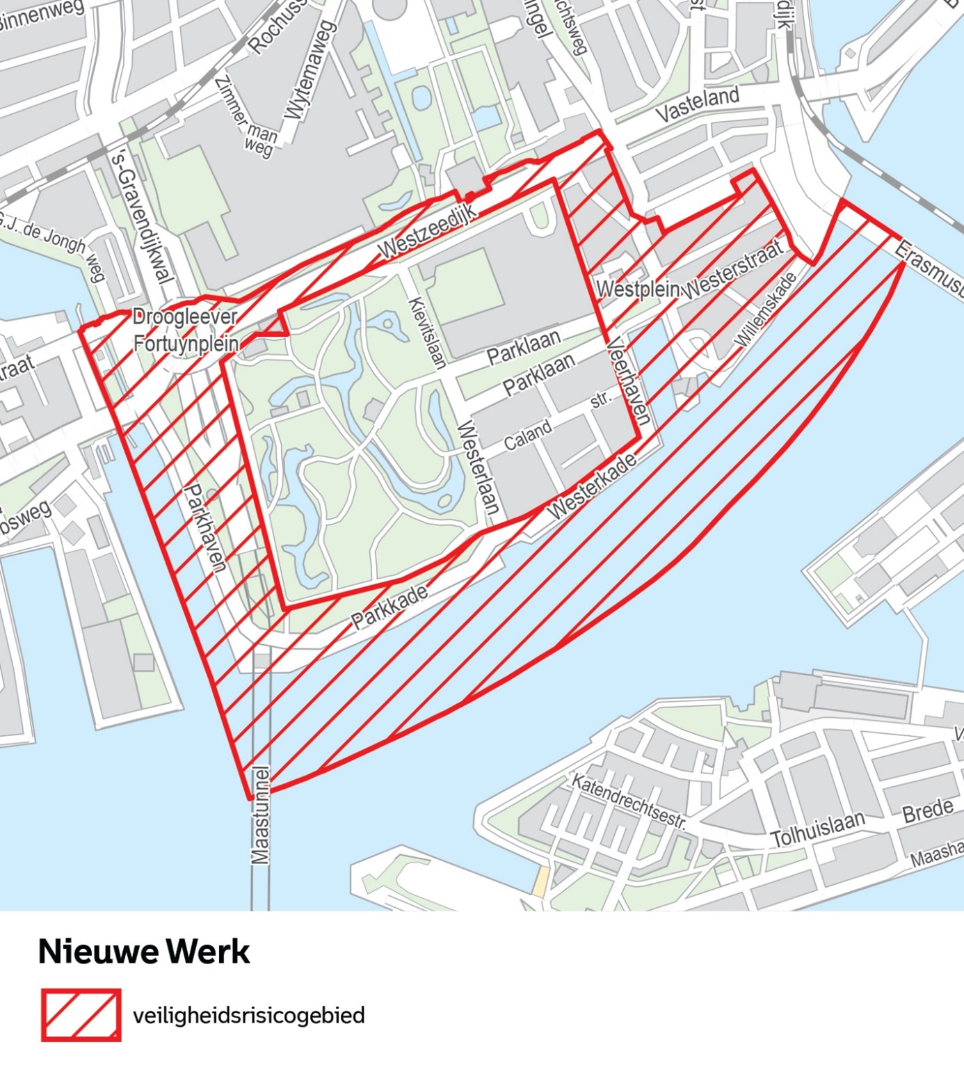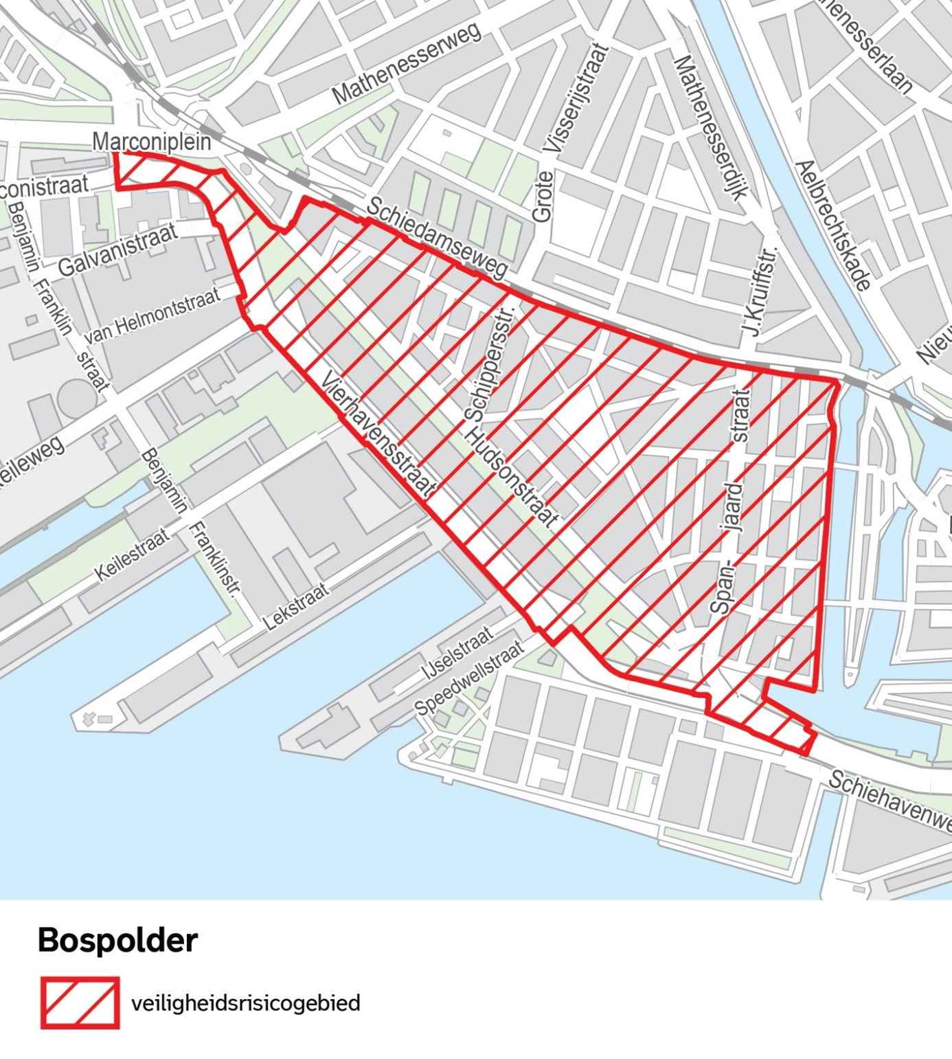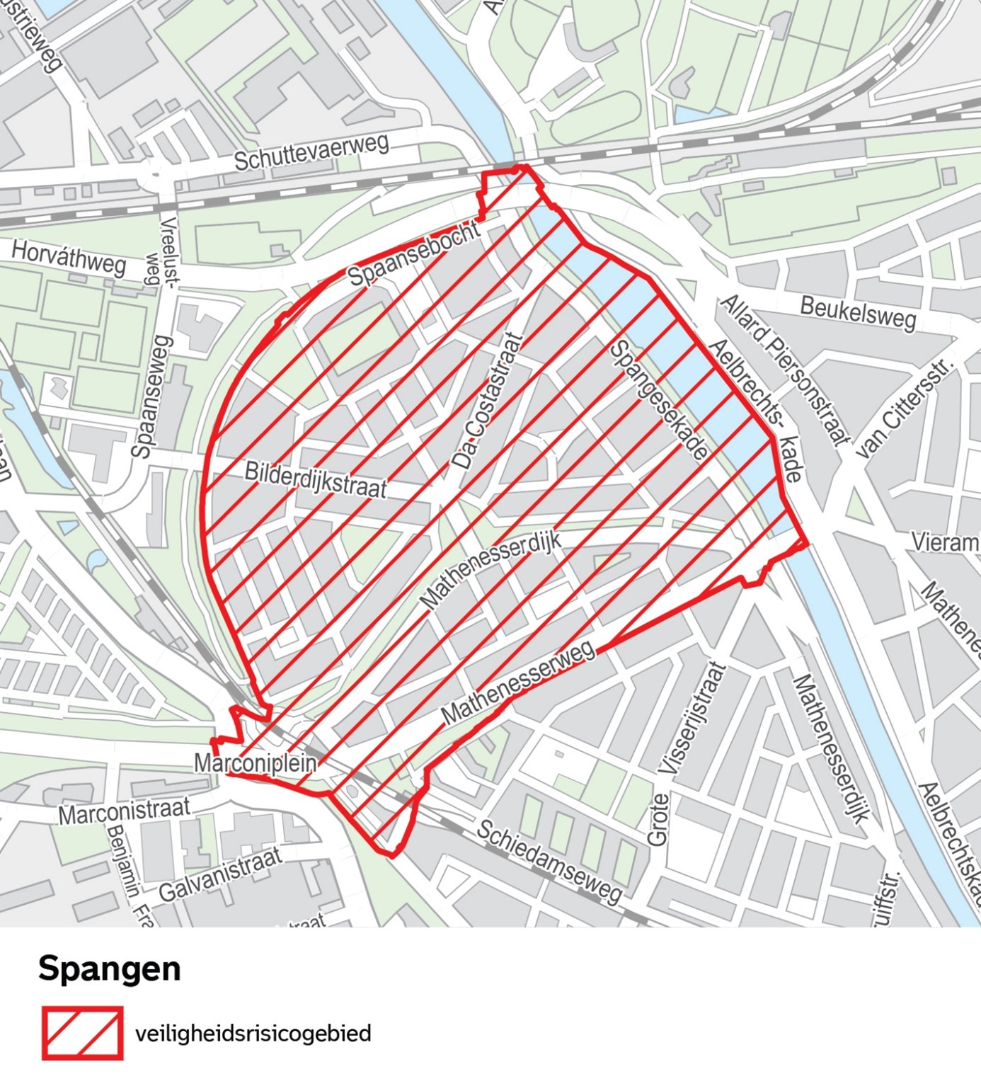 Op grond van artikel 2:76 van de Algemene plaatselijke verordening Rotterdam 2012 wordt het gebied Centrum, zoals aangegeven op de kaarten in bijlage 1, met inbegrip van de daarin gelegen voor het publiek openstaande gebouwen en daarbij behorende erven, wegen, oevers en aanwezige knooppunten van het openbaar vervoer, aangewezen als veiligheidsrisicogebied.