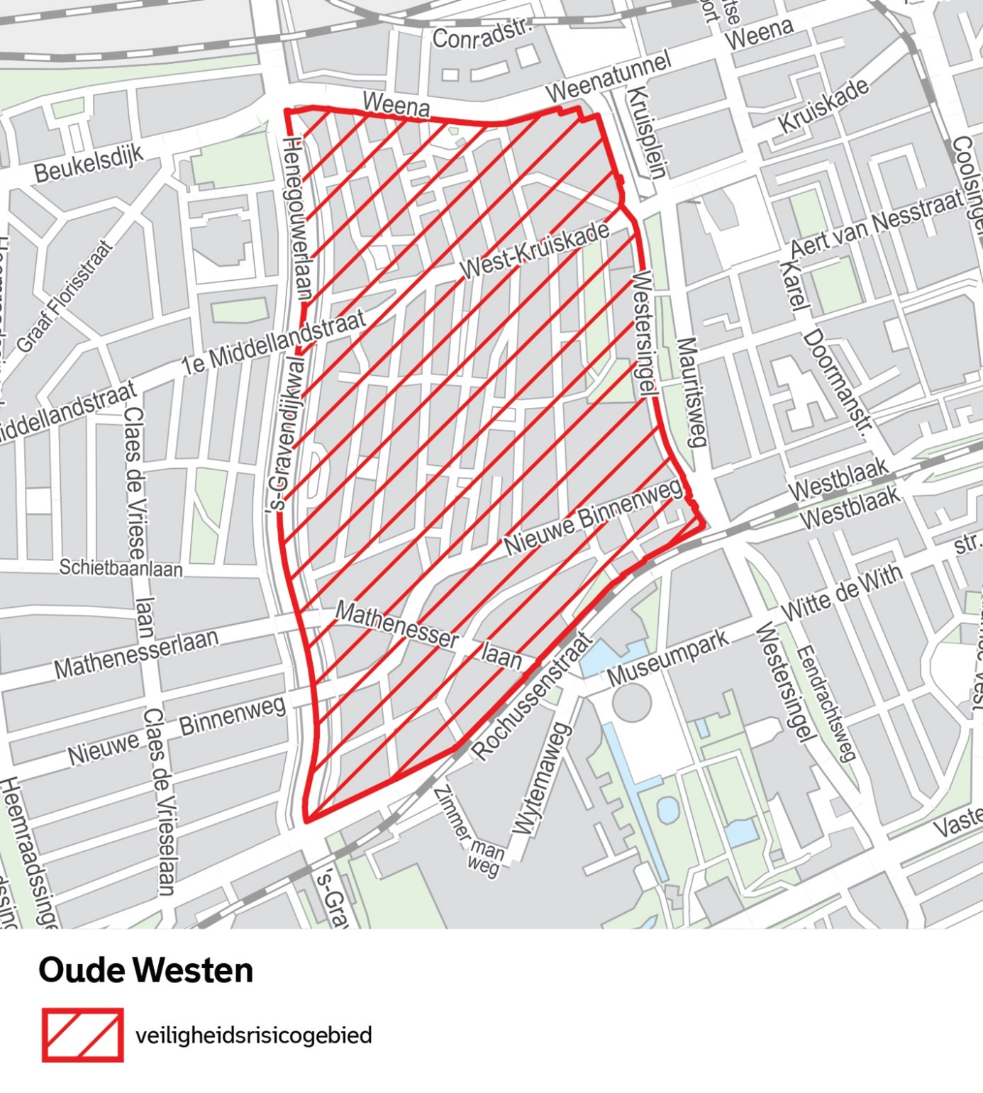 Kaart 1.2: detailkaart CBS-buurt Oude Westen behorende bij de overzichtskaart van het veiligheidsrisicogebied Centrum