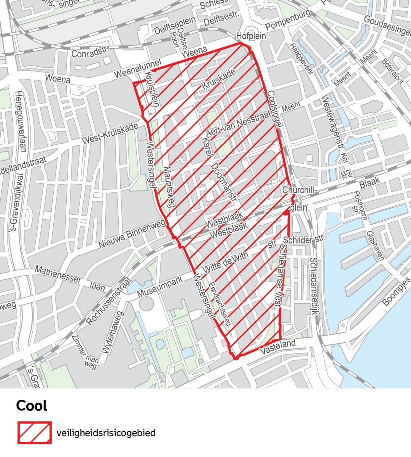 Kaart 1.5: detailkaart CBS-buurt Cool behorende bij de overzichtskaart van het veiligheidsrisicogebied Centrum