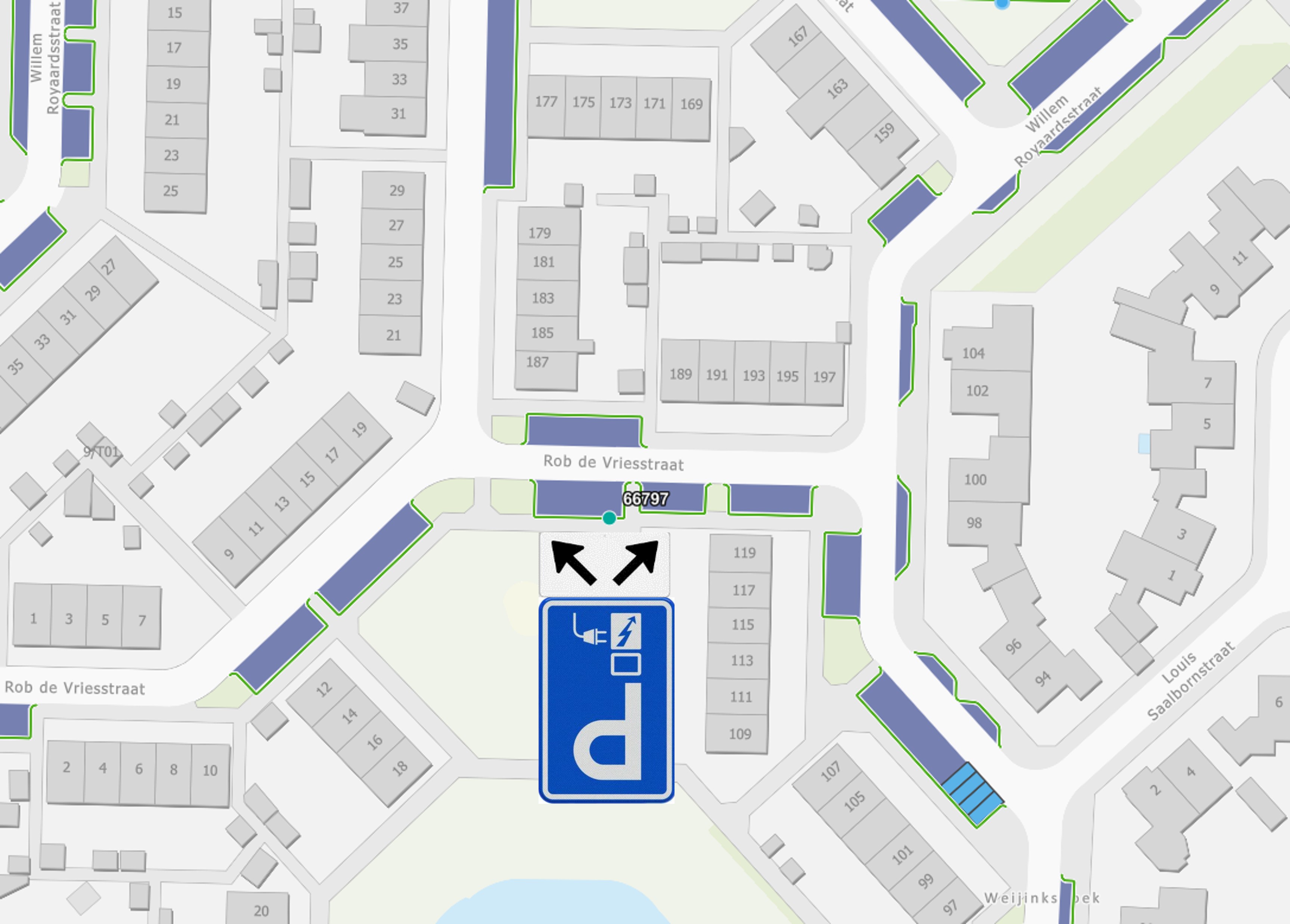 Verkeersbesluit twee parkeerplaatsen elektrische voertuigen Rob de Vriesstraat