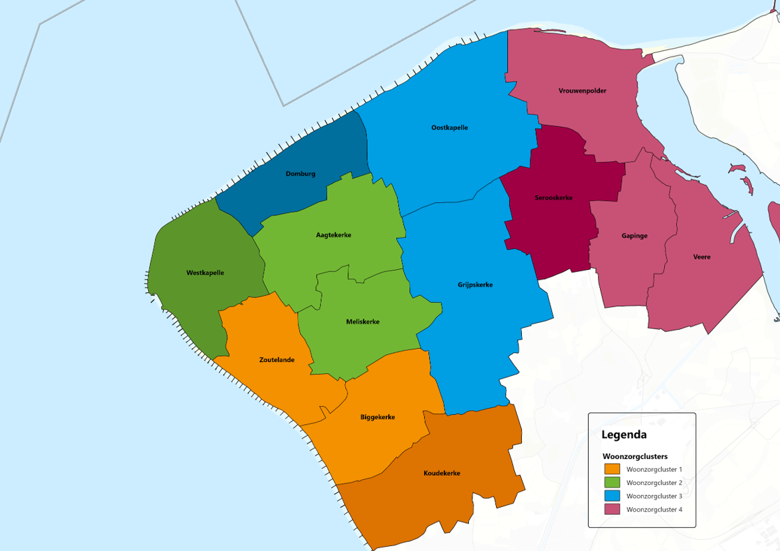 De indeling in vier woonzorgclusters vormt een ruimtelijke richting van de woonzorgvisie. Hiermee kunnen we als gemeente richting geven aan partners als woningcorporatie en zorg- en welzijnsorganisaties