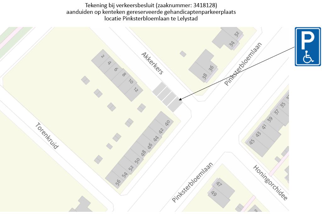 Verkeersbesluit aanduiden op kenteken gereserveerde gehandicaptenparkeerplaats locatie Pinksterbloemlaan te Lelystad