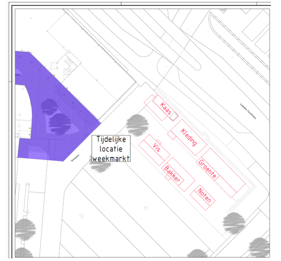 Rekening houdende met het vorenstaande mag duiden wij aan dat gedurende de markttijden (incl. op en afbouw) op een deel van het Dorpsplein geen gebruik gemaakt mag worden van de parkeervakken. In de parkeervakken op deze locaties mag uitsluitend geparkeerd worden buiten de genoemde markttijden. In verband met de benodigde ruimte voor de markkramen mag daar gedurende die tijd (hierna vermeld) ook niet geparkeerd worden.