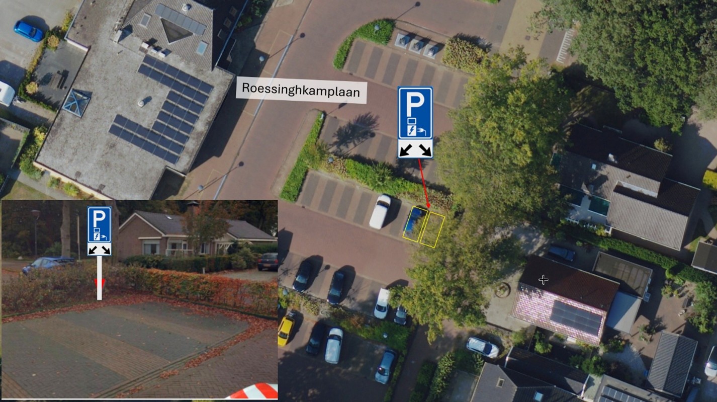 - ter uitbreiding van het netwerk, om de groeiende vraag naar oplaadgelegenheid te faciliteren behoefte bestaat aan een laadpaal met twee parkeerplaatsen voor het opladen van elektrische voertuigen in de omgeving van de Roessinghkamplaan;