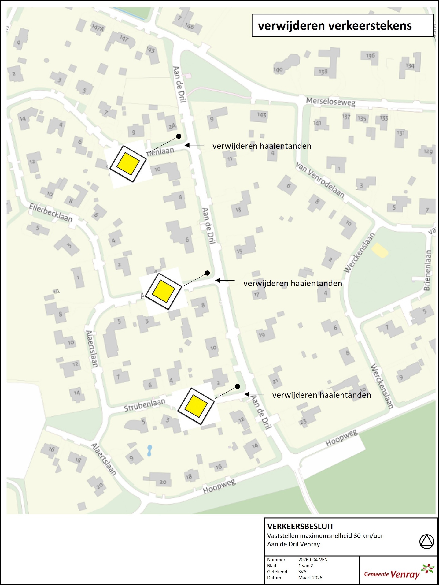Door het verwijderen van verkeersborden B1 van Bijlage I van het RVV 1990 en het verwijderen van de haaientanden Aan de Dril als voorrangsweg op te heffen;