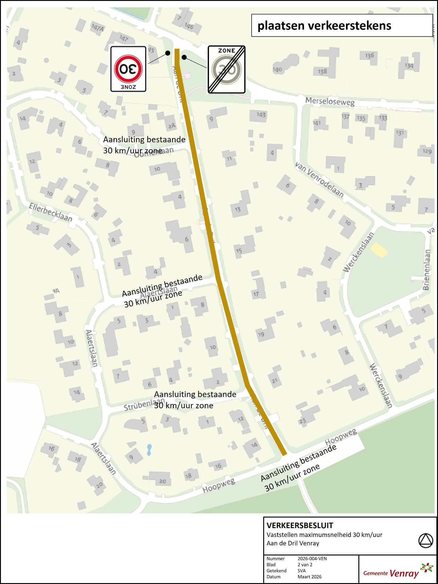 Door het plaatsen van verkeersbord A01-30-zb en A02-30-ze van Bijlage I van het RVV 1990 de maximumsnelheid op Aan de Dril vast te stellen op 30 km/uur;