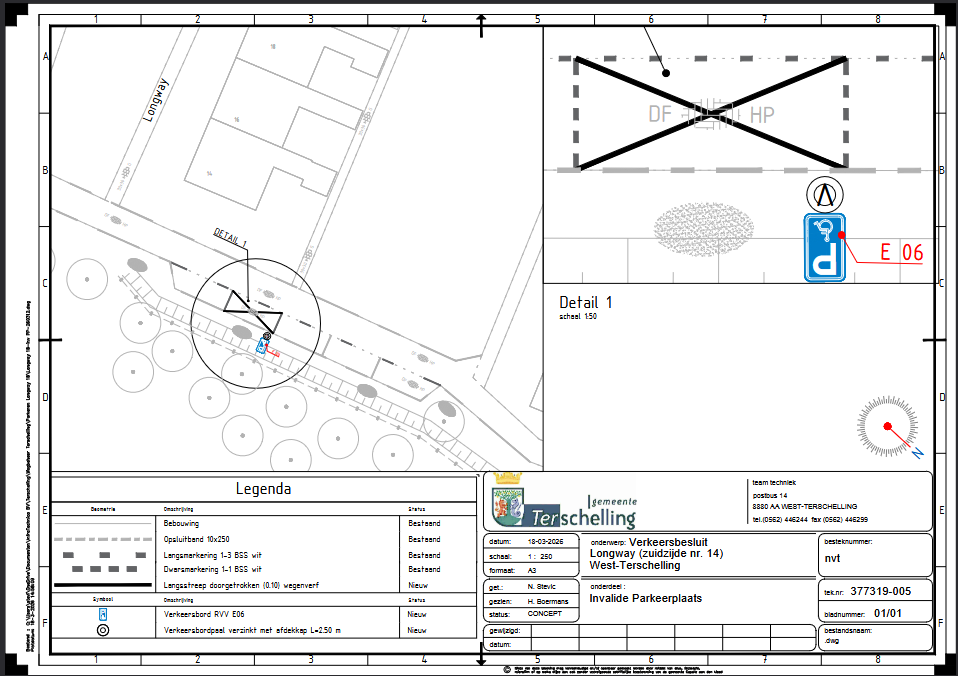 Verkeersbesluit voor het inrichten van een invalidenparkeerplaats aan Longway te West-Terschelling