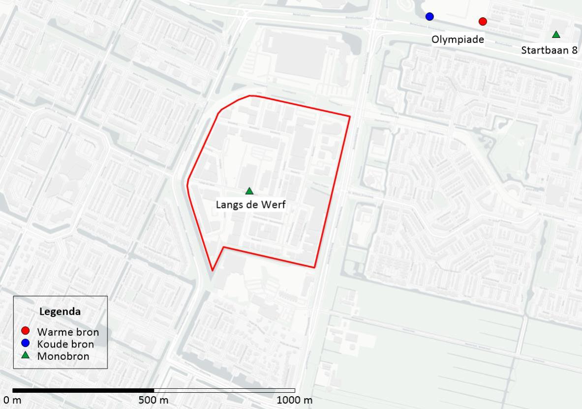 Voorkomen moet worden dat hydrothermische interferentie met het open bodemenergiesysteem van Langs de Werf optreedt. De bronfilters van het open bodemenergiesysteem Langs de Werf zijn gerealiseerd in het ondiepere gecombineerde eerste en tweede watervoerende pakket. Gezien de weerstand en de afstand tussen de bronfilters van het bestaande open bodemenergiesysteem Langs de Werf en het filtertraject voor het beoogde open bodemenergiesysteem wordt het bestaande systeem naar verwachting niet negatief beïnvloed door het beoogde open bodemenergiesysteem. Het open bodemenergiesysteem van Olympiade en Startbaan 8 liggen op een dusdanige afstand dat deze naar verwachting niet negatief beïnvloed worden.