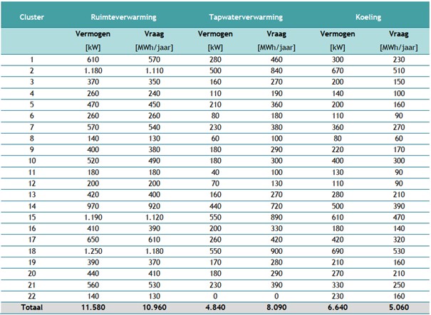Tabel 3 | Overzicht deelgebieden en verwachte gebouwzijdige warmte- en koudevraag en vermogen.