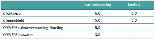Tabel 2 | Energetische uitgangspunten: dT, COP en SPF
