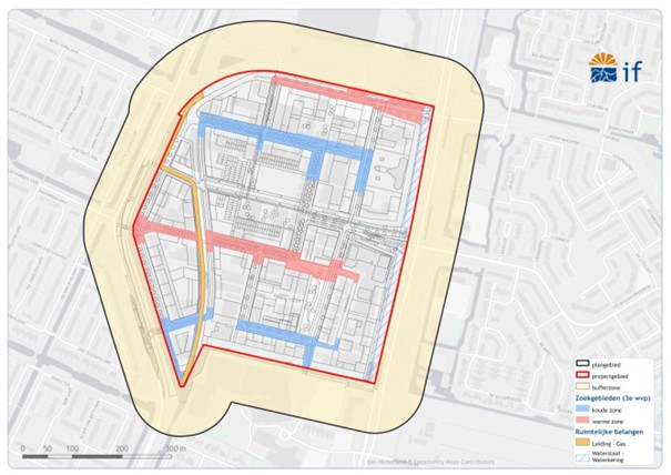 Figuur 3.3 | Overzicht aanwezige open bodemenergiesystemen rondom de projectlocatie (rood gearceerd)