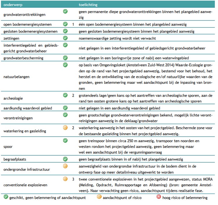 In Tabel 3.3 zijn de relevante belangen opgenomen die van invloed kunnen zijn op de werking van een open bodemenergiesysteem in Nieuw Legmeer. Het gaat om zowel technische als juridische aspecten.