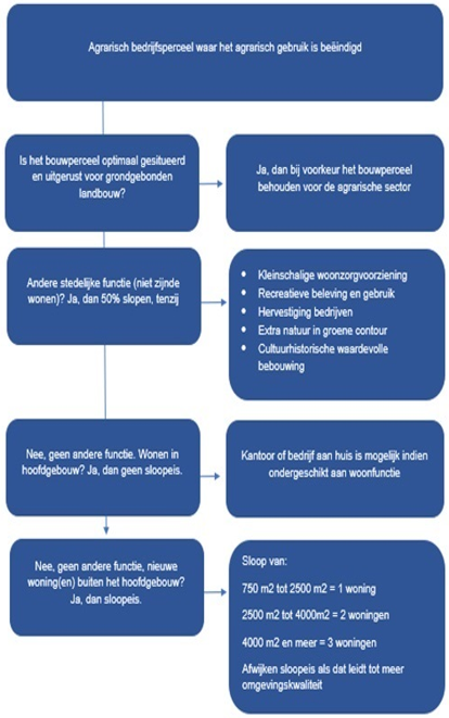 De provinciale omgevingsverordening heeft vrij strikte eisen voor functieverandering (met name in termen van sloop). Maar afwijken is mogelijk als er sprake is van versterking van de ruimtelijke kwaliteit.