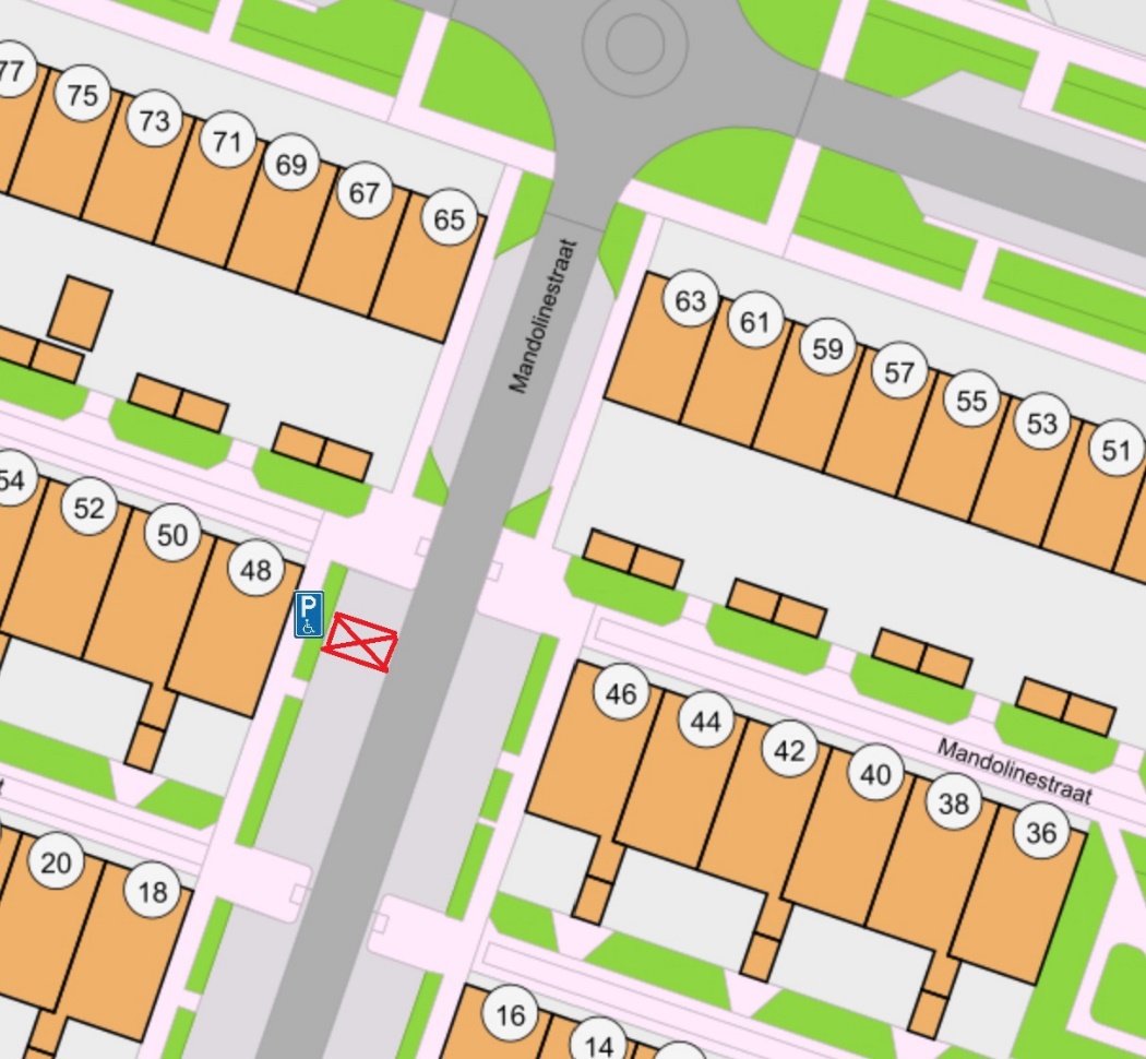 De afdeling Stadsruimte van de gemeente Almere heeft vanuit de afdeling Zorg & Welzijn een verzoek ontvangen voor het aanwijzen en inrichten van een gehandicaptenparkeerplaats op kenteken. De aanvraag voor de gehandicaptenparkeerplaats is ingediend en getoetst bij de afdeling Zorg & Welzijn. Na het toetsen van het recht op een gehandicaptenparkeerplaats heeft de desbetreffende wijkregisseur een plek aangewezen.