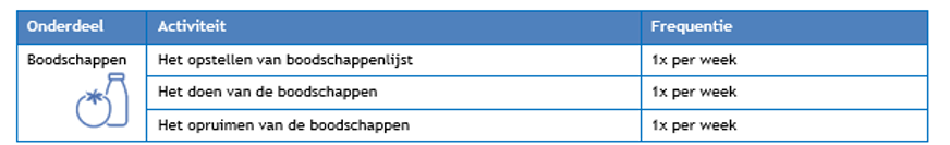 * Activiteiten en frequenties benodigd voor de boodschappen