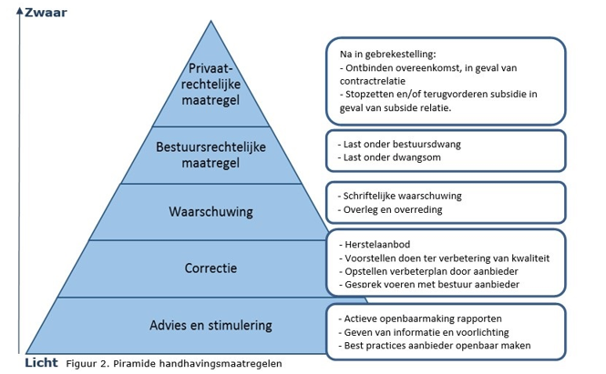 In onderstaande figuur staan de verschillende handhavingsmaatregelen weergegeven, geordend van licht naar zwaar.9