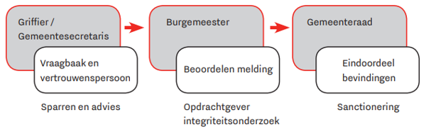 Als de burgemeester daar reden toe ziet, informeert de burgemeester de gemeentesecretaris, die het gemandateerde bevoegd gezag is over alle ambtenaren. De gemeentesecretaris volgt hierbij de interne regeling melding vermoeden misstand. Communicatie met de melder verloopt steeds via de burgemeester. Een en ander valt logischerwijs buiten het bestek van de Procesafspraken Integriteit. Kwesties die individuele ambtenaren betreffen komen in de regel niet in de gemeenteraad.