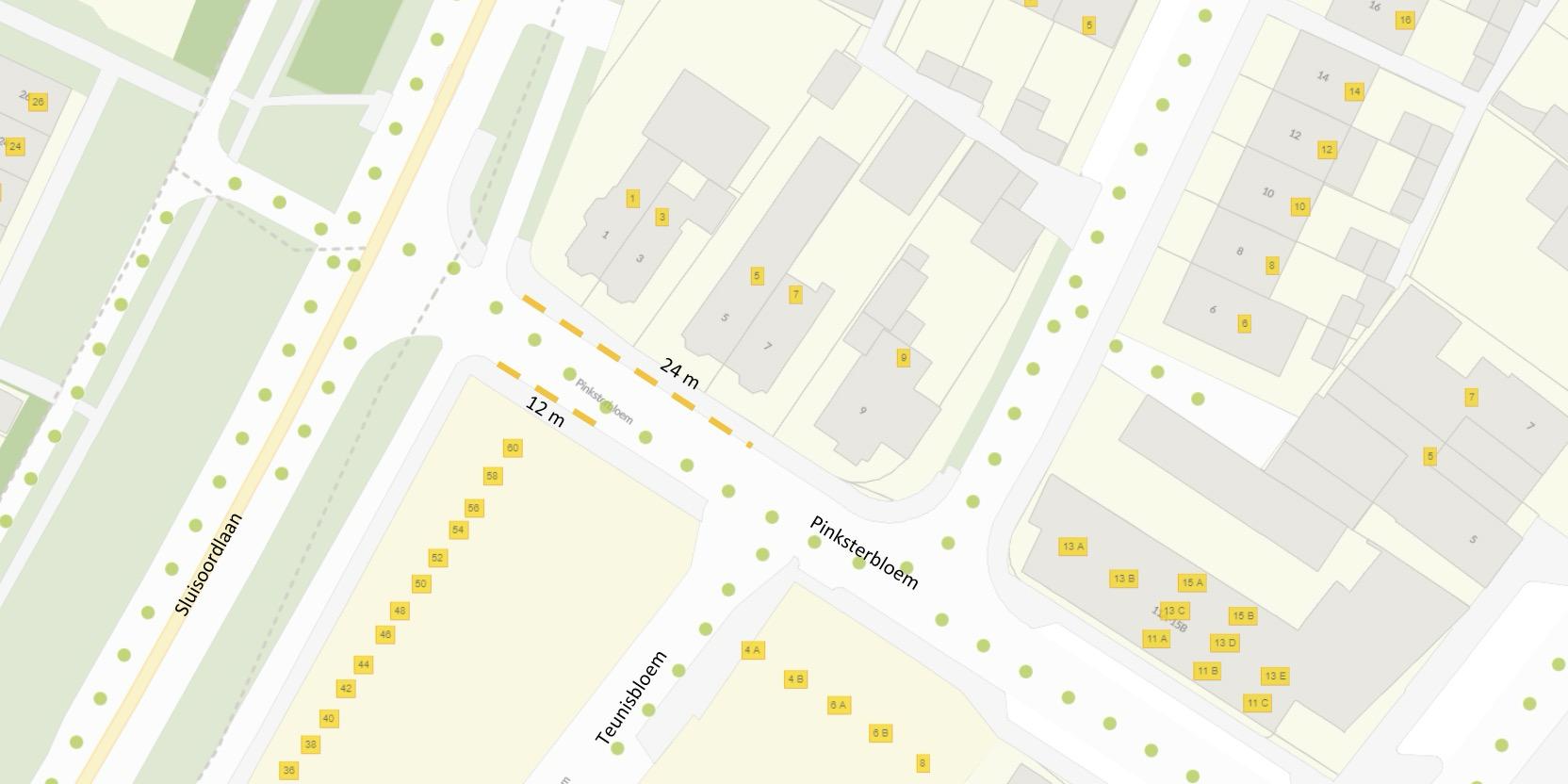 Aan de Pinksterbloem is eerder een verkeersbesluit genomen om aan beide zijden van de weg een gele onderbroken streep aan te brengen, waarmee een parkeerverbod werd ingesteld op het deel tussen de Sluisoordlaan en de Teunisbloem. Aanleiding hiervoor was de verkeersonveilige situatie die ontstond doordat bezoekers van de nabijgelegen cafetaria hun voertuigen aan weerszijden van de weg parkeerden. Hierdoor werd de rijbaan versmald en werd de doorstroming richting de drukke Sluisoordlaan belemmerd. In de praktijk leidde dit ertoe dat voertuigen moesten wachten op de Sluisoordlaan, met gevaarlijke situaties tot gevolg, met name voor het verkeer op het aangrenzende fietspad.