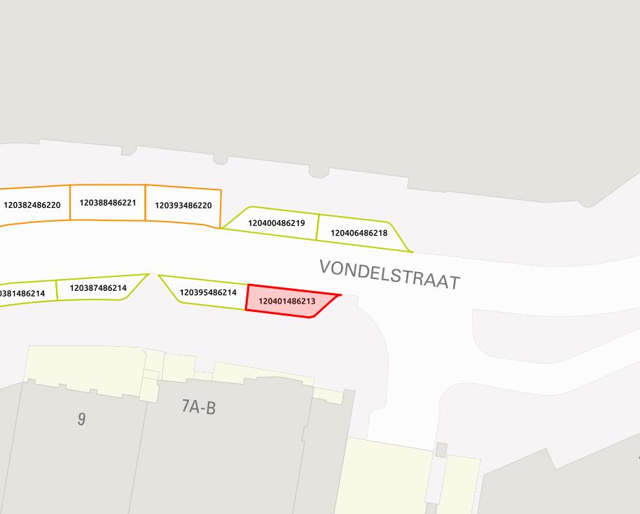 ter hoogte van perceel Vondelstraat 7 een gehandicaptenparkeerplaats op kenteken is gelegen;