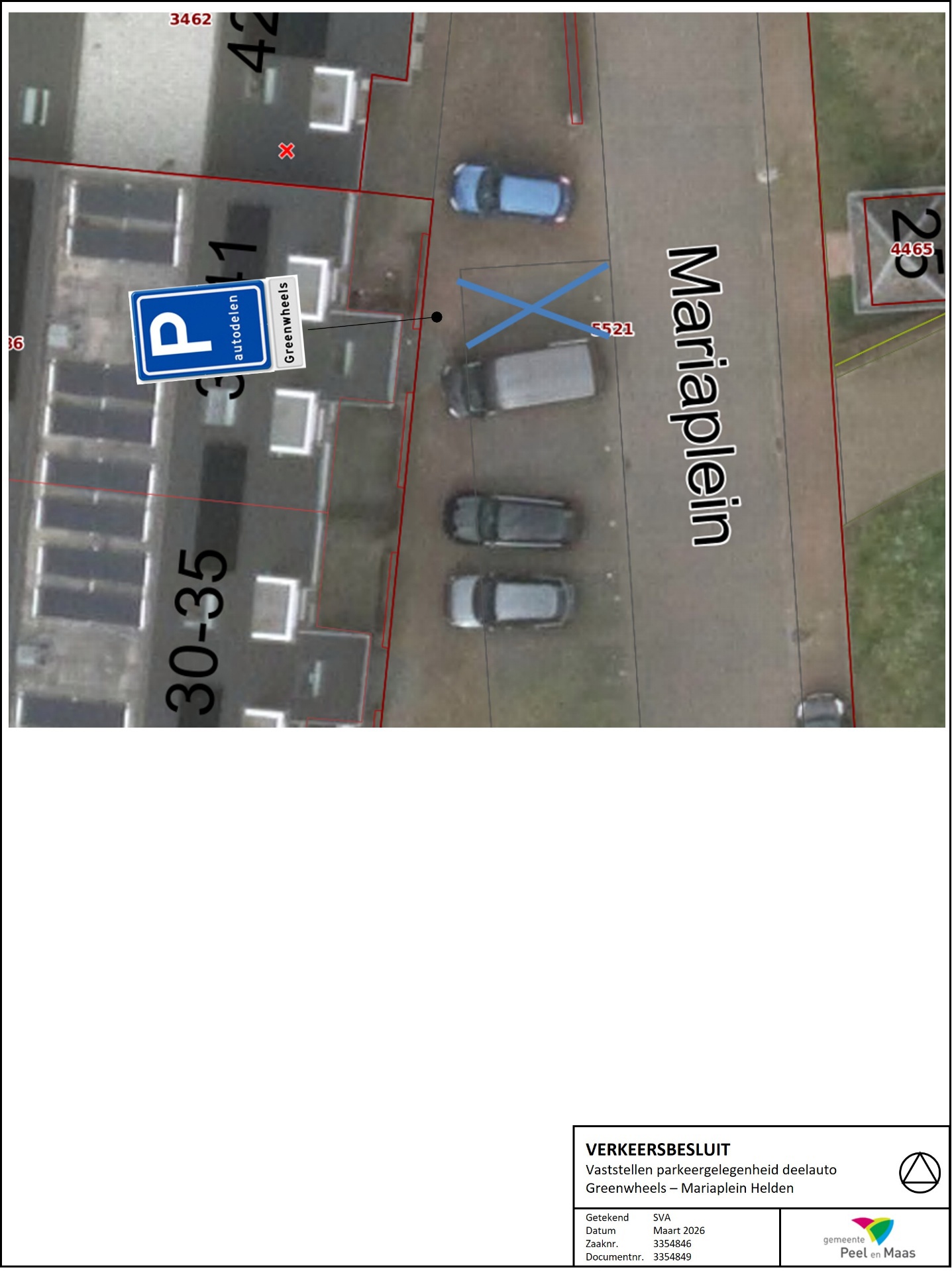 Gemeente Peel en Maas – Vaststellen parkeergelegenheid voor deelauto Greenwheels – Mariaplein Helden