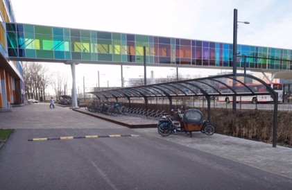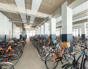 In het bovenstaande voorbeeld is een centrale openbare fietsparkeervoorziening bewust gecombineerd met enkele voorzieningen, zoals een koffiebar en een fietsservicepunt. Een goed geplaatste fietsparkeervoorziening nabij functies waar mensen graag met de fiets komen, heeft een aantrekkende werking. Etagerekken en een hoogteverschil is voor de doelgroep studenten geen groot obstakel.