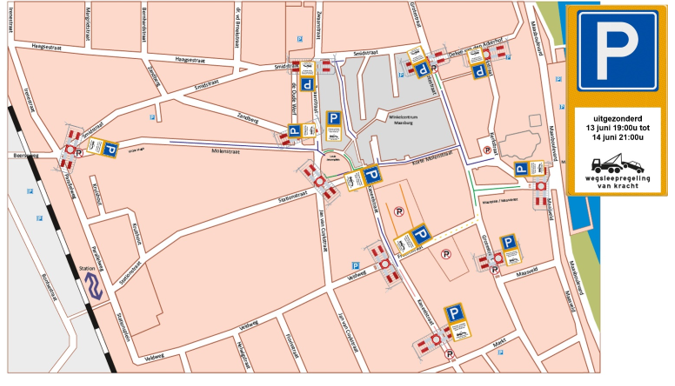 Het instellen van een parkeerverbod op de parkeerplaatsen aan de Centrum van Cuijk te Cuijk middels bebording te plaatsen van bijlage 1 van het Reglement Verkeersregels en Verkeerstekens 1990 volgens model E4, met de uitzondering voor 13 juni 2026 19:00 uur tot en met 14 juni 2026 21:00 uur.