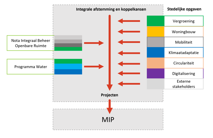 Integrale programmering en afstemming op strategisch en tactisch niveau verbeteren. Daarbij is aandacht nodig voor onderhoudscycli, afschrijvingstermijnen en samenwerking met derden. In het Meerjarig Investerings-Programma (MIP) van dit moment zijn met name investeringen in wegen opgenomen, waarbij andere disciplines (zoals groen) in de uitvoering meeliften. We werken toe naar een meer integrale investeringsplanning, waarin alle onderdelen van de openbare ruimte samen worden bekeken.