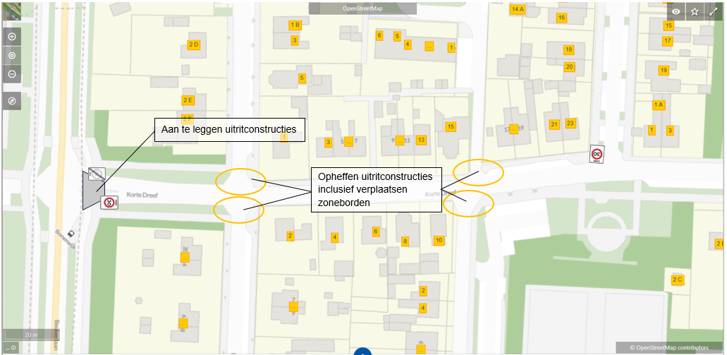 Uit het oogpunt van het verzekeren van de veiligheid op de weg, het beschermen van de weggebruikers en passagiers, het in stand houden van de weg en het waarborgen van de bruikbaarheid daarvan, het zoveel mogelijk waarborgen van de vrijheid van het verkeer, het voorkomen of beperken van door het verkeer veroorzaakte overlast, hinder of schade en het voorkomen of beperken van door het verkeer veroorzaakte aantasting van het karakter of van de functie van objecten of gebieden is het gewenst om de snelheid op de Dreef en Korte Dreef te verlagen van 50km/uur naar 30km/uur. Om de snelheidsbeperking te ondersteunen wordt de weg versmald naar 4,8m en ter hoogte van de school en het hertenkamp een plateau aangelegd. Daarnaast wordt de voorrang, door de uitritconstructies, met de zijstraten Lindelaan, Lindeboomplein en Parklaan opgeheven en vervangen door visuele plateaus over de gehele kruisingen. Als laatste worden de aansluitingen met de Beukenlaan en Van Veenweg voorzien van uitritconstructies om op die wijze de voorrang te regelen. De voorrangsregeling met de Sportlaan en Pastoor Sprengerstraat blijven echter bestaan omdat die straten de erf-status hebben. Het éénrichting verkeer tussen de Pastoor Sprengerstraat en de Van Veenweg wordt bij de herinrichting opgeheven inclusief de fietsstroken. Vanaf dat moment is het besluit van 28 april 2020 met kenmerk INT20-1549 ingetrokken. Tevens wordt de voetgangersoversteekplaats ter hoogte van Dreef nummer 6 opgeheven. Als laatste zal de aansluiting van de Rembrandtstraat worden uitgevoerd als uitritconstructie om de daar geldende snelheidsbeperking van 30km/uur extra te ondersteunen en de gehele verkeerssituatie op deze kruising samen met die van de Dreef overzichtelijker en veiliger te maken. Bij het realiseren van de uitritconstructies komen de fietspad aanzetten op de zijwegen te vervallen. Recht tegenover de aansluiting zal een fiets doorsteek komen naar het fietspad aan de overzijde van de weg. Door het aanpassen van beide aansluitingen en het opheffen van de fietspad aanzetten verbeteren we de situatie bij de twee zebrapaden. De fietser zal niet meer op dezelfde locatie oversteken als de voetganger waardoor verschillende voorrangsregelingen van kracht kunnen zijn. Het huidige stopverbod tussen de Pastoor Sprengerstraat en de Van Veenweg zal beperkt worden tot een half uur voor en na de tijden dat de basisschool in- en uitgaat. Dit betekend dat buiten deze tijden, wanneer er geen grote hoeveelheden kinderen aanwezig zijn, het wel mogelijkheden is om langs de kant van de weg stil te staan. Bij de uitritconstructies met de Beukenlaan en de Van Veenweg zullen de borden A1-30zb en A2 30ze (begin en einde zone 30km/uur) worden geplaatst. Verder zullen de borden A1-30zb ook bij de kruisingen met de Sportlaan en Pastoor Sprengerstraat worden geplaatst op de overgang van erf naar 30 km/uur-zone. De bestaande zoneborden A1-30zb en A2-30ze op de bestaande locaties in het gebied worden verwijderd. Door het aanbrengen van de uitritconstructies komen de voorrangsborden B3, B4, B5 en B6 op en rond deze kruisingen te vervallen Met het bovenstaande wordt beoogd de verkeersveiligheid op de Dreef en Korte Dreef te vergroten. Met de aanpassingen ter plaatse van de Beukenlaan en Van Veenweg wordt het verkeersbeeld rustiger en duidelijker. Met name bij de Van Veenweg zal het voor fietsers duidelijker en overzichtelijker worden wat ook voor automobilisten een verbetering oplevert. Het opheffen van het eenrichting verkeer zal voor de basisschool weer voor verkeer in twee richtingen zorgen echter door het smalle profiel en het plateau zal de snelheid laag liggen. Daarbij zal de bereikbaarheid in dit gebied weer wat toenemen.