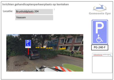 Verkeersbesluit verzoek tot een gehandicaptenparkeerplaats Brunholdplaats 204, 8171VE Vaassen