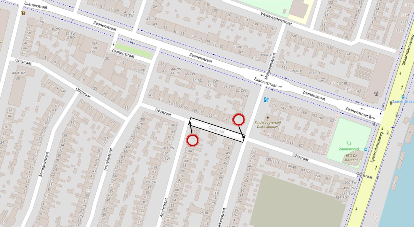 door middel van het plaatsen van de verkeersborden C1 van bijlage 1 van het RVV 1990 een geslotenverklaring in beide richtingen in te stellen voor voertuigen, ruiters en geleiders van rij- of trekdieren of vee in de Obistraat, tussen de Atjehstraat en de Molukkenstraat;