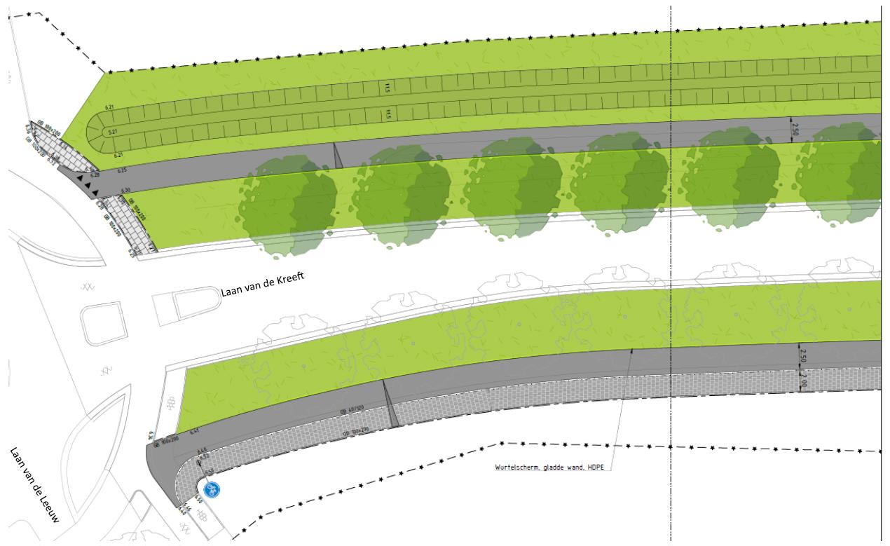 De paden op de rotonde Laan van de Leeuw / Laan van de Kreeft / Tweelingenlaan zijn bedoeld als fietspaden. De aansluitende nieuw aan te leggen paden langs de Laan van de Kreeft worden daarmee ook als fietspad aangewezen. De bromfiets blijft hier op de rijbaan, gelijk aan de situatie nu.