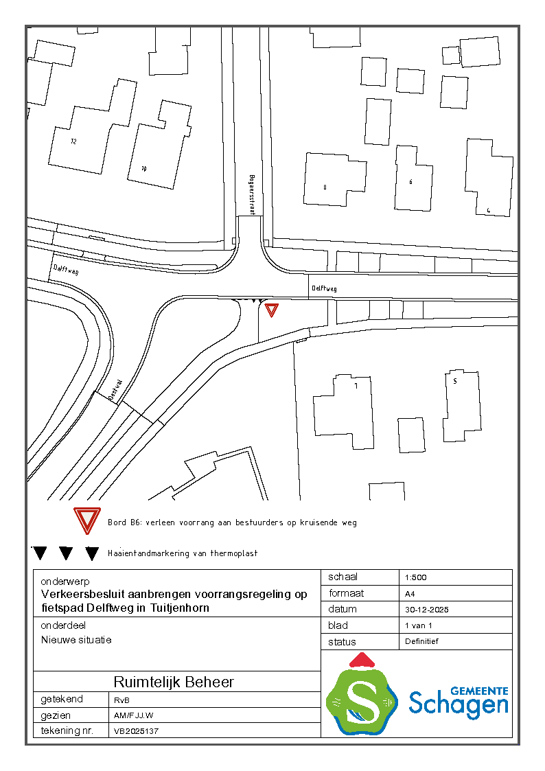 Gemeente Schagen- Verkeersbesluit instellen voorrangsregeling fietspad op de Delftweg, Tuitjenhorn.