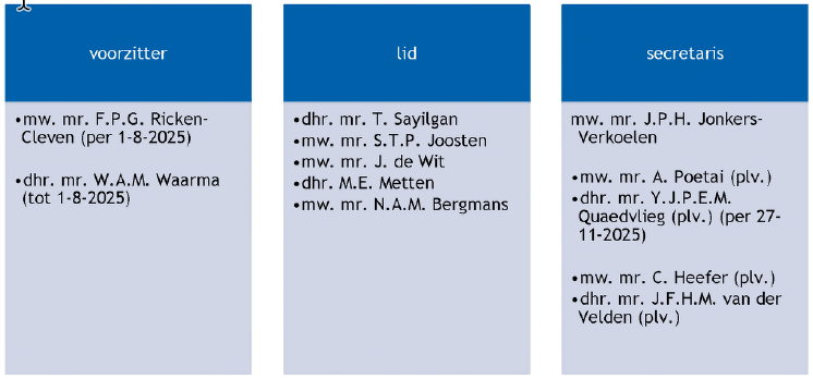 De commissie heeft in 2025 een nieuwe voorzitter verwelkomd, namelijk mevrouw F.P.G. Ricken-Cleven.