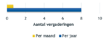 De commissie kwam in 2025 8 keer bijeen voor 1 tot maximaal 3 hoorzittingen per bijeenkomst. Er zijn 3 geplande bijeenkomsten geannuleerd vanwege een gebrek aan te behandelen bezwaarschriften.