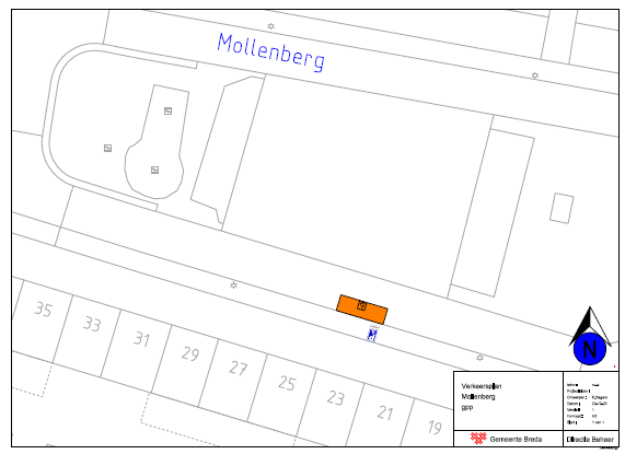 Een gehandicaptenparkeerplaats op kenteken aan te wijzen in de Mollenberg ter hoogte van huisnummer 23 te Breda. Een en ander zoals weergegeven op de bijgevoegde tekening ‘Verkeersplan Mollenberg gpp’.