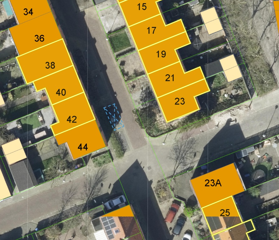 zoals bedoeld in artikel 2 van de Wegenverkeerswet, is het gewenst om een gereserveerde parkeerplaats voor gehandicapten te doen aanbrengen op het wegdek van: Olivier van Noortstraat, voor de woningen 42 en 44.