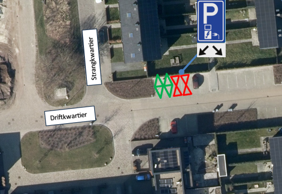 Beide parkeerplaatsen bij de laadpaal worden voor het laden gereserveerd. Er mogen dan geen auto’s worden geparkeerd die worden aangedreven door een brandstofmotor. Dit maximaliseert het gebruik van de locatie en stimuleert om ook elektrisch te rijden.