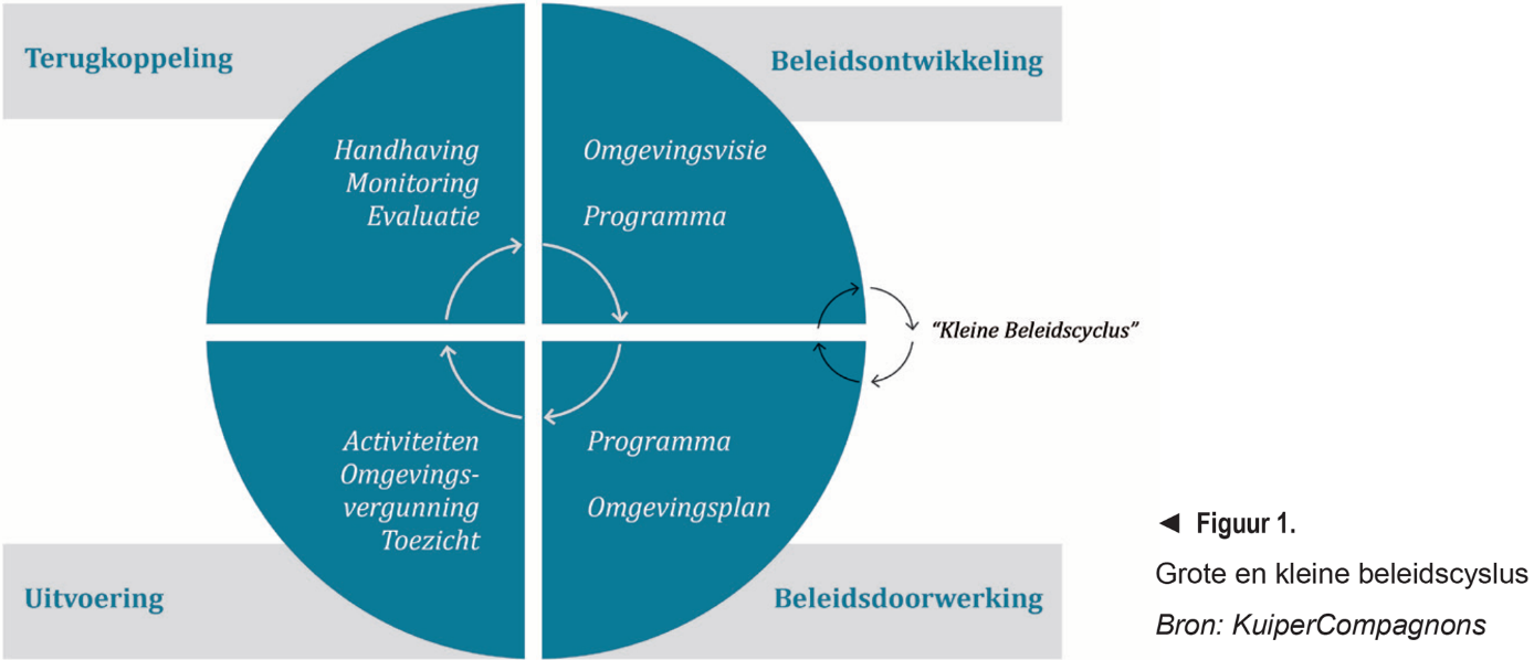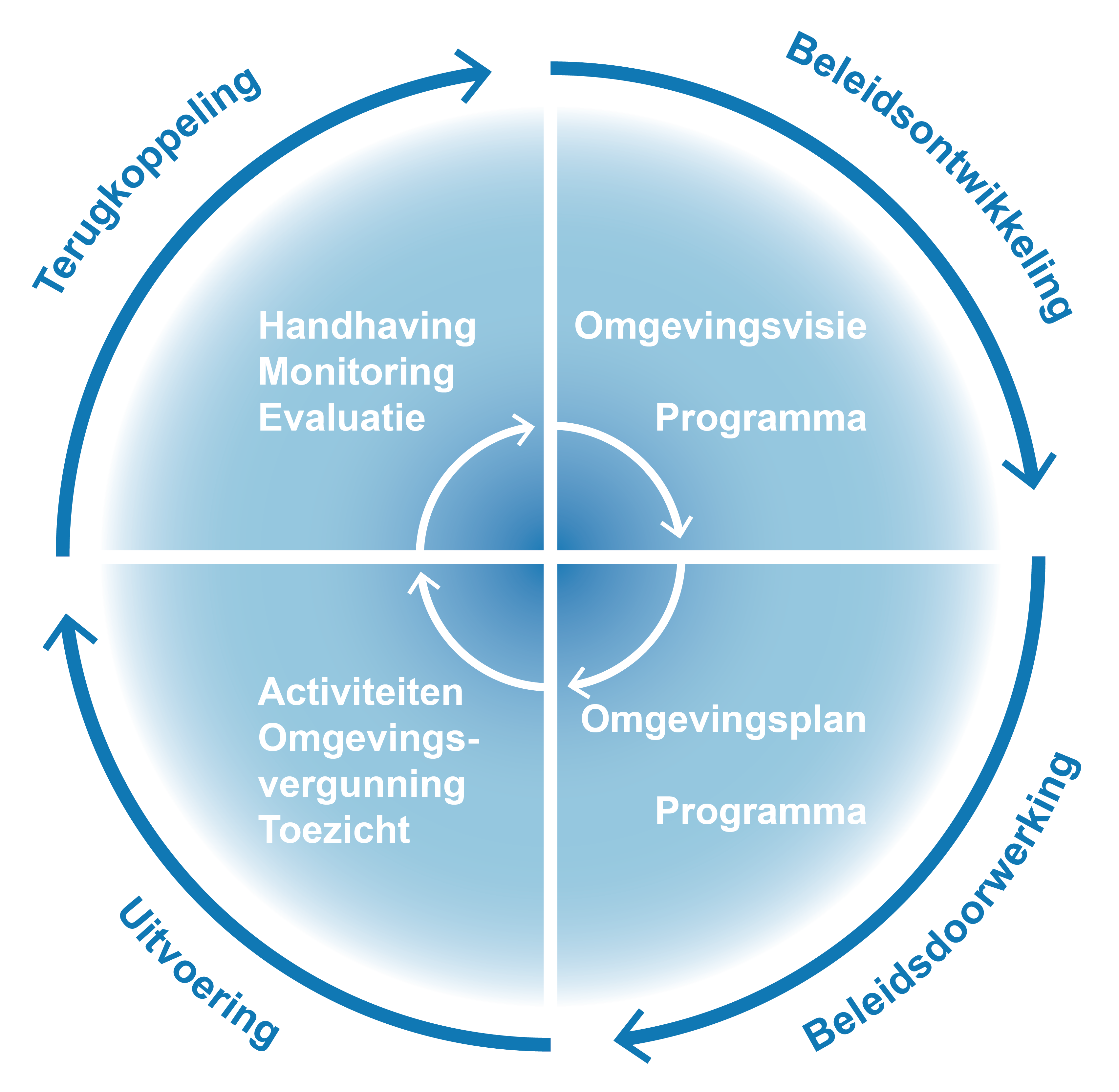 Het is dan ook belangrijk de omgevingsvisie te plaatsen in het geheel van de beleidscyclus (zie ook paragraaf 6.3.). Zo vormt de omgevingsvisie de beleidsmatige basis voor het omgevingsplan en eventuele omgevingsprogramma’s. Ook wordt de omgevingsvisie periodiek gemonitord en geëvalueerd (zie paragraaf 6.7.). De omgevingsvisie is dus nooit ‘af’. We blijven er samen met de samenleving aan werken. Als gemeente hebben we hoge ambities om de democratie van onderop beter te ondersteunen, met een werkwijze die van buiten naar binnen is georganiseerd. Hiermee geven we aan dat de gemeente optreedt als netwerkpartner en als decentrale overheidslaag kan inspelen op wat er speelt in de samenleving. De instrumenten van de Omgevingswet – zoals het omgevingsplan, de omgevingsvisie en participatie – bieden concrete handvatten om deze werkwijze in de praktijk te brengen.