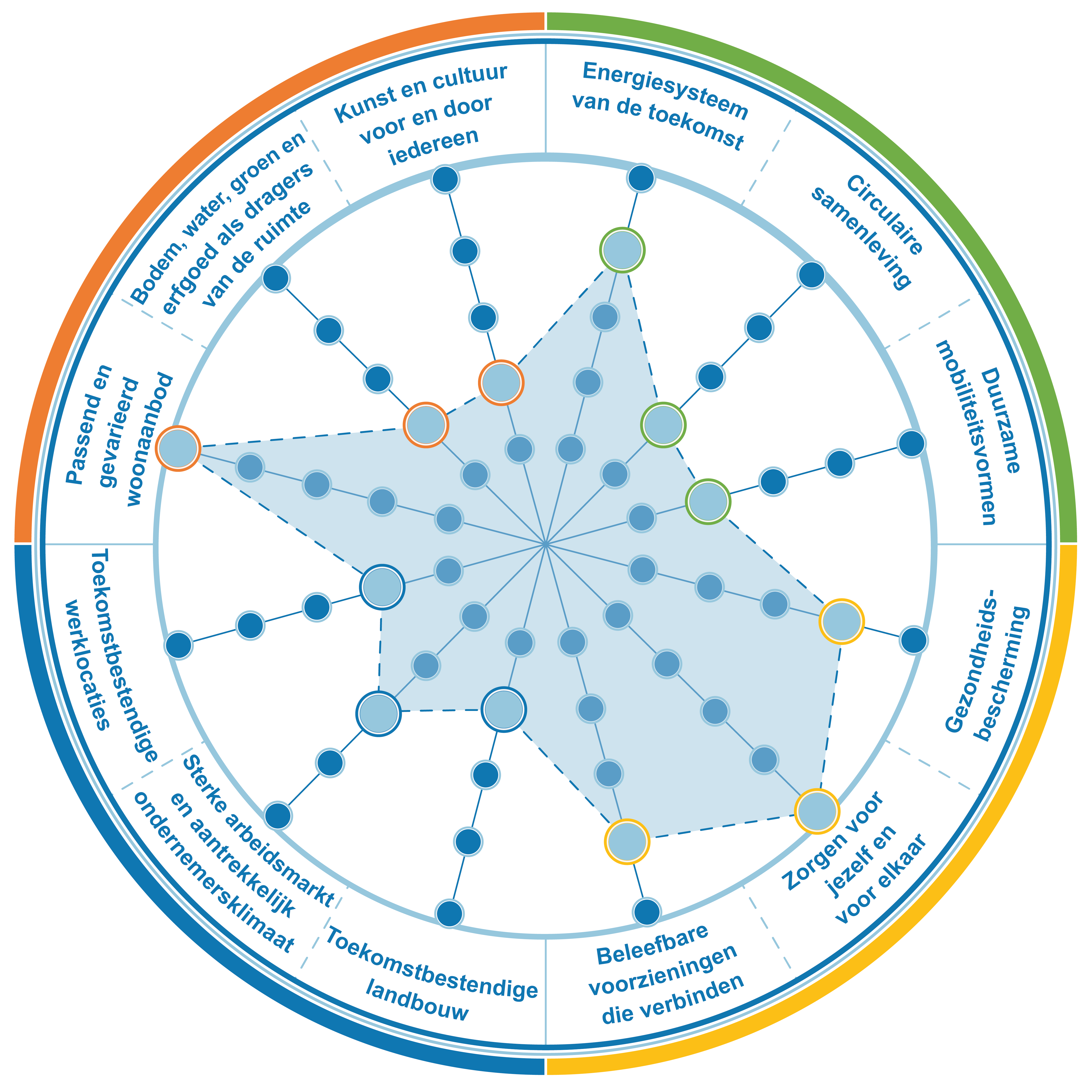 Met het begrip ‘brede welvaart’ wordt bedoeld dat welvaart niet alleen draait om materiële welstand, maar ook om zaken als een goede gezondheidszorg, een veilige en aantrekkelijke leefomgeving, een schoon milieu en goed onderwijs. Het is een maatstaf voor alles wat mensen van waarde vinden. Brede welvaartsontwikkeling vertoont overeenkomsten met het begrip ‘duurzame ontwikkeling’ dat de VN hanteert (Sustainable Development Goals (SDG)). Terug naar link van noot.