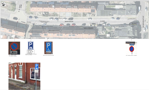 • Het vrijhouden van bestaande opritten en de gehandicaptenparkeerplaats op kenteken door middel van dwarsmarkeringen;