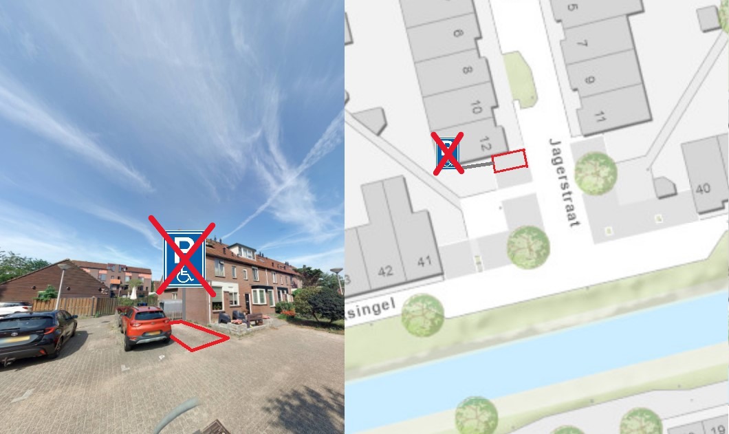 door het verwijderen van een bord model E6 van Bijlage 1 van het RVV 1990 en het onderbord met daarop weergegeven het kenteken van het desbetreffende voertuig de individuele gehandicaptenparkeerplaats op de Jagerstraat ter hoogte van pandnummer 12 op te heffen;