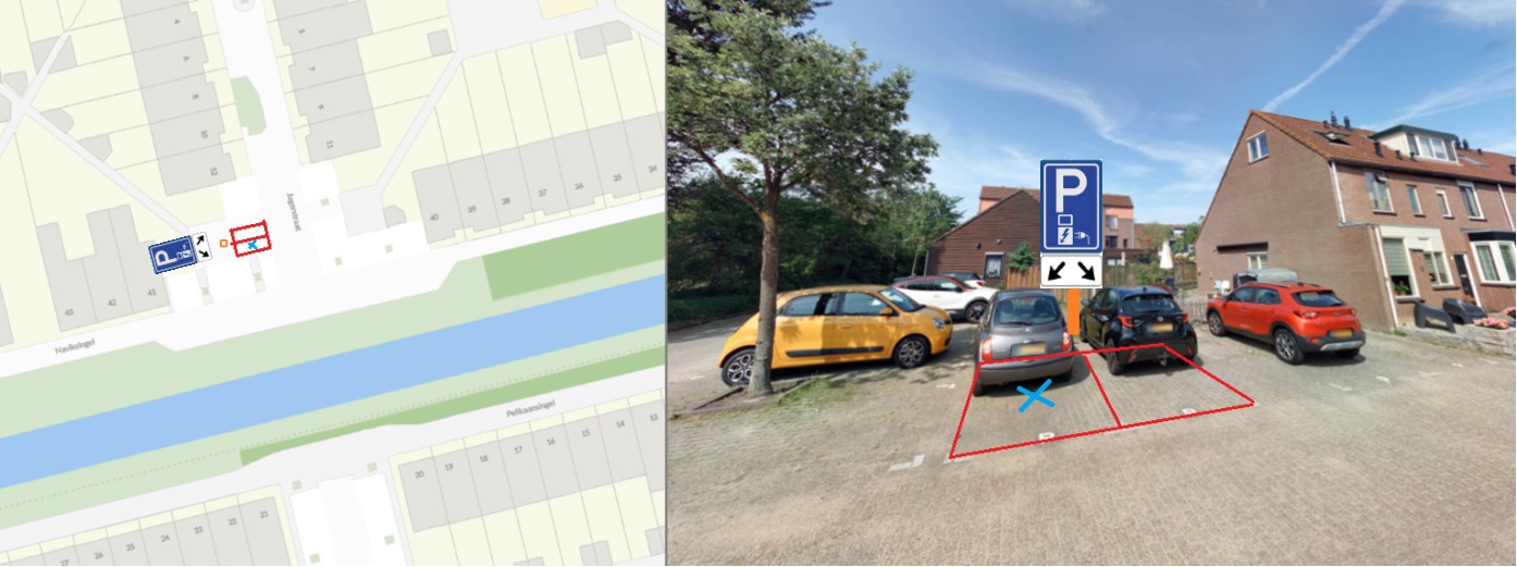 in dit geval de betreffende parkeerplaatsen beiden middels verkeersbesluit worden aangewezen als parkeerplaatsen die als specifiek doel hebben het opladen van elektrische voertuigen;