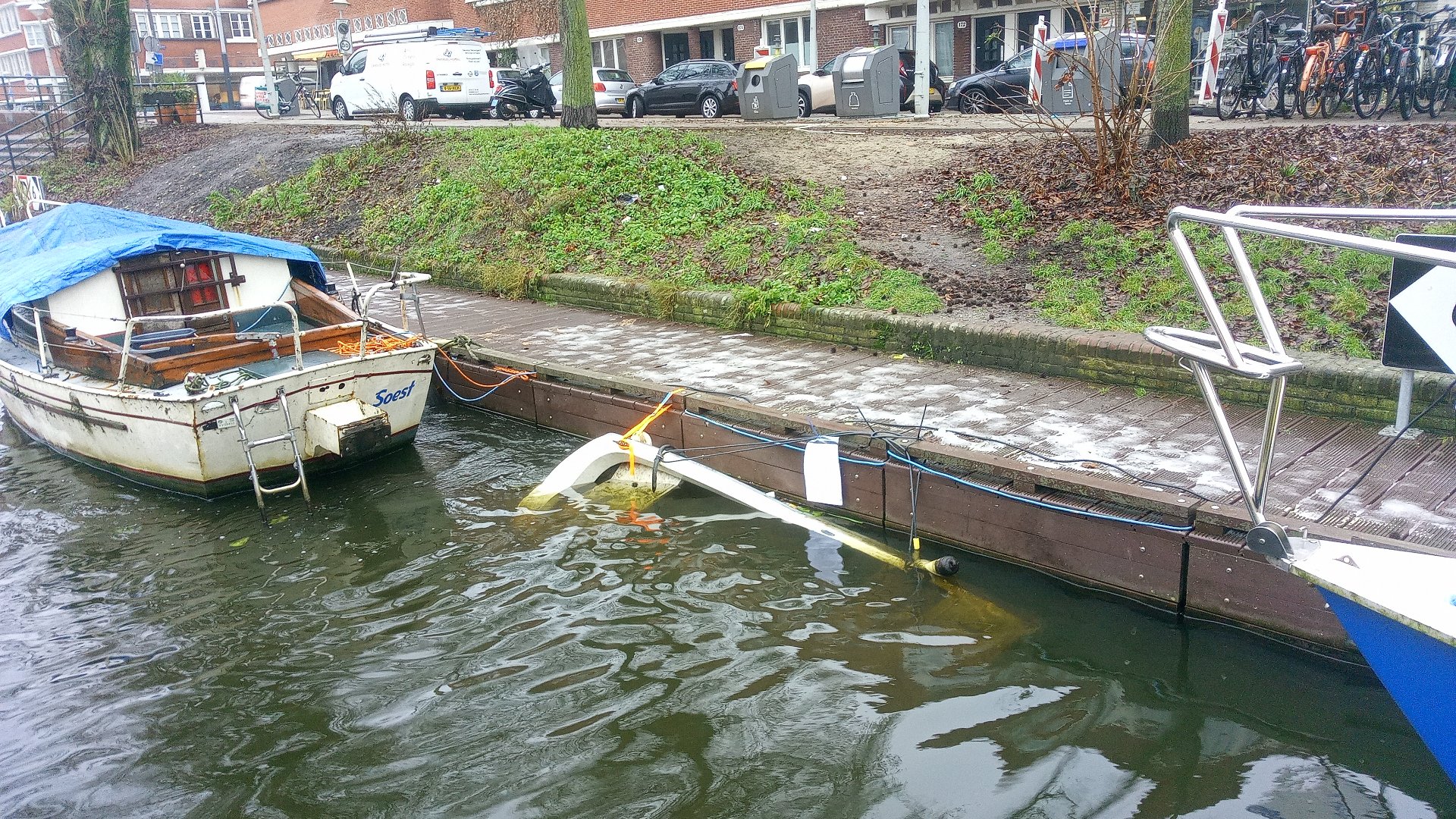 Mededeling opruimen gezonken vaartuig volgens de Wrakkenwet aan Admiralengracht 221 te Amsterdam
