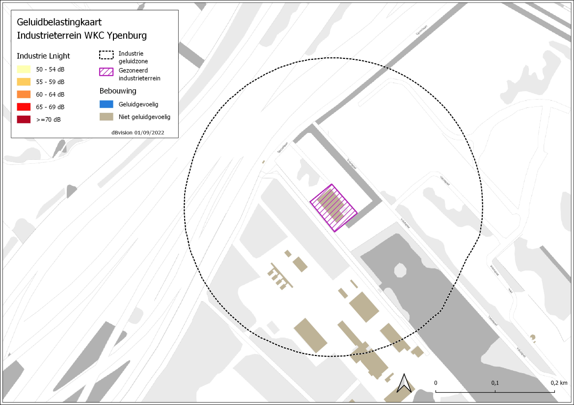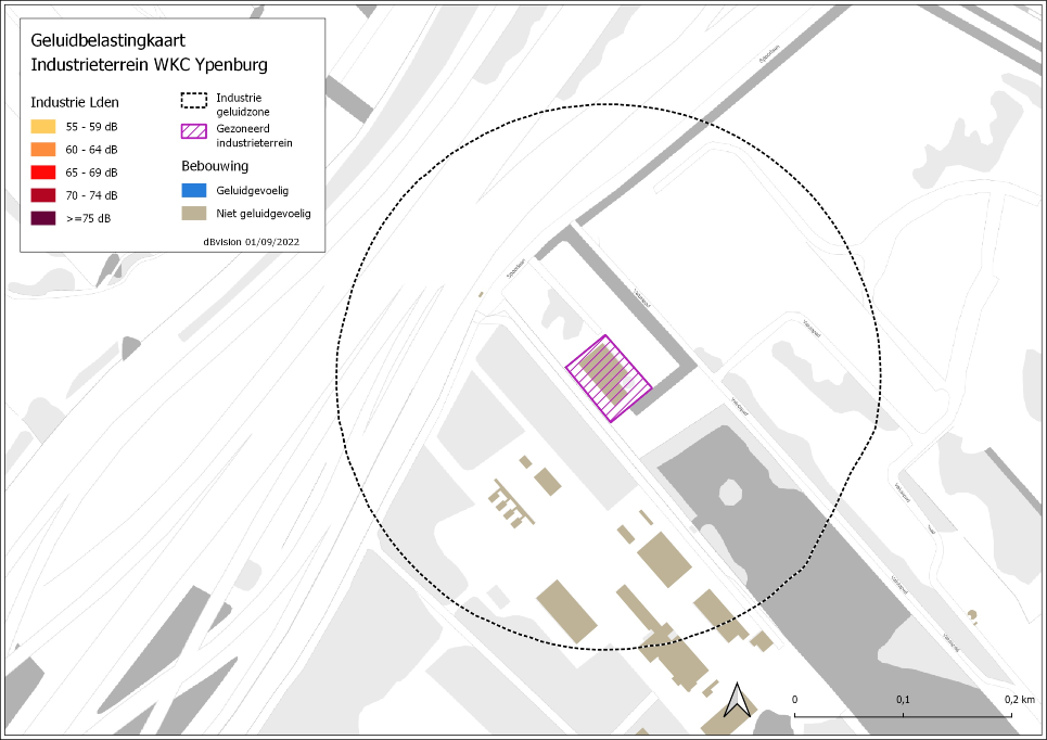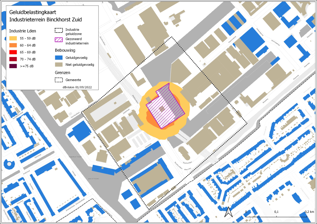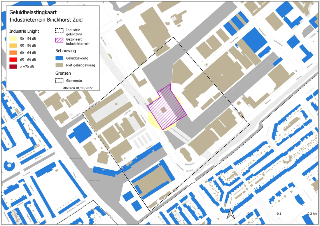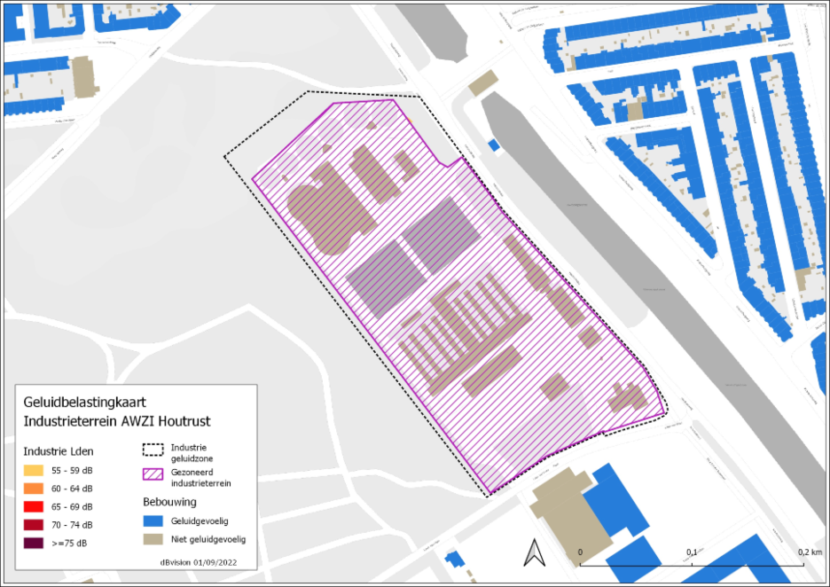 Op de kaarten voor industrielawaai zijn de geluidscontouren van de gezoneerde industrieterreinen opgenomen. De tabel bij deze kaart bevat het aantal woningen en inwoners binnen deze contouren.