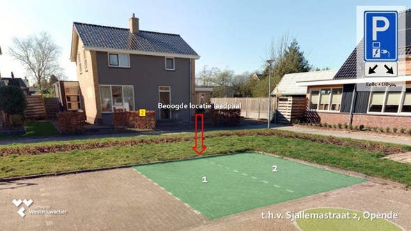 dat het gaat om één laadpaal (met twee oplaadaansluitingen) op het openbare parkeerterrein t.h.v. Sjallemastraat 2 te Opende;