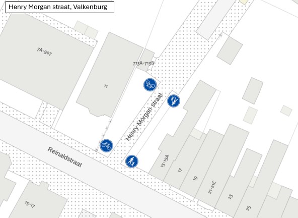 Ter bevordering van de verkeersveiligheid en het verbeteren van de leefbaarheid in de Henry Morgan straat treft de gemeente Valkenburg aan de Geul verkeersmaatregelen in de Henry Morgans straat. Het verharde pad tussen de Henry Morgan straat en de Reinaldstraat wordt ingericht als fiets‑ en voetpad, aangeduid met de daarvoor geldende verkeersborden G11 en G07, zodat deze route uitsluitend toegankelijk is voor fietsers en voetgangers. Hiermee wordt een veilige en logische verbinding voor langzaam verkeer gerealiseerd en wordt ongewenst gemotoriseerd verkeer in de woonstraat voorkomen. Door deze maatregel wordt de verkeerssituatie overzichtelijker, veiliger en beter afgestemd op het gebruik van de omgeving door bewoners en langzaam verkeer.