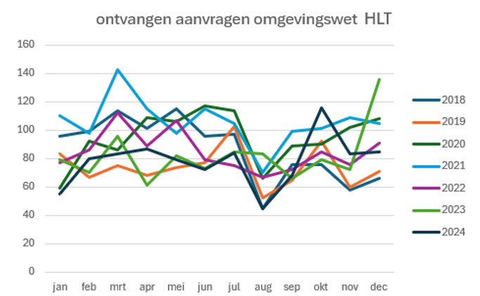 Het aantal Omgevingswet aanvragen lag in 2024 gemiddeld op het niveau van 2023.