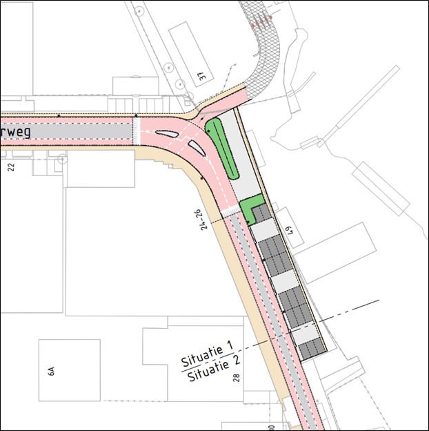 de ventweg met haaksparkeerplaatsen ter hoogte van nummer 49 verwijderd wordt;